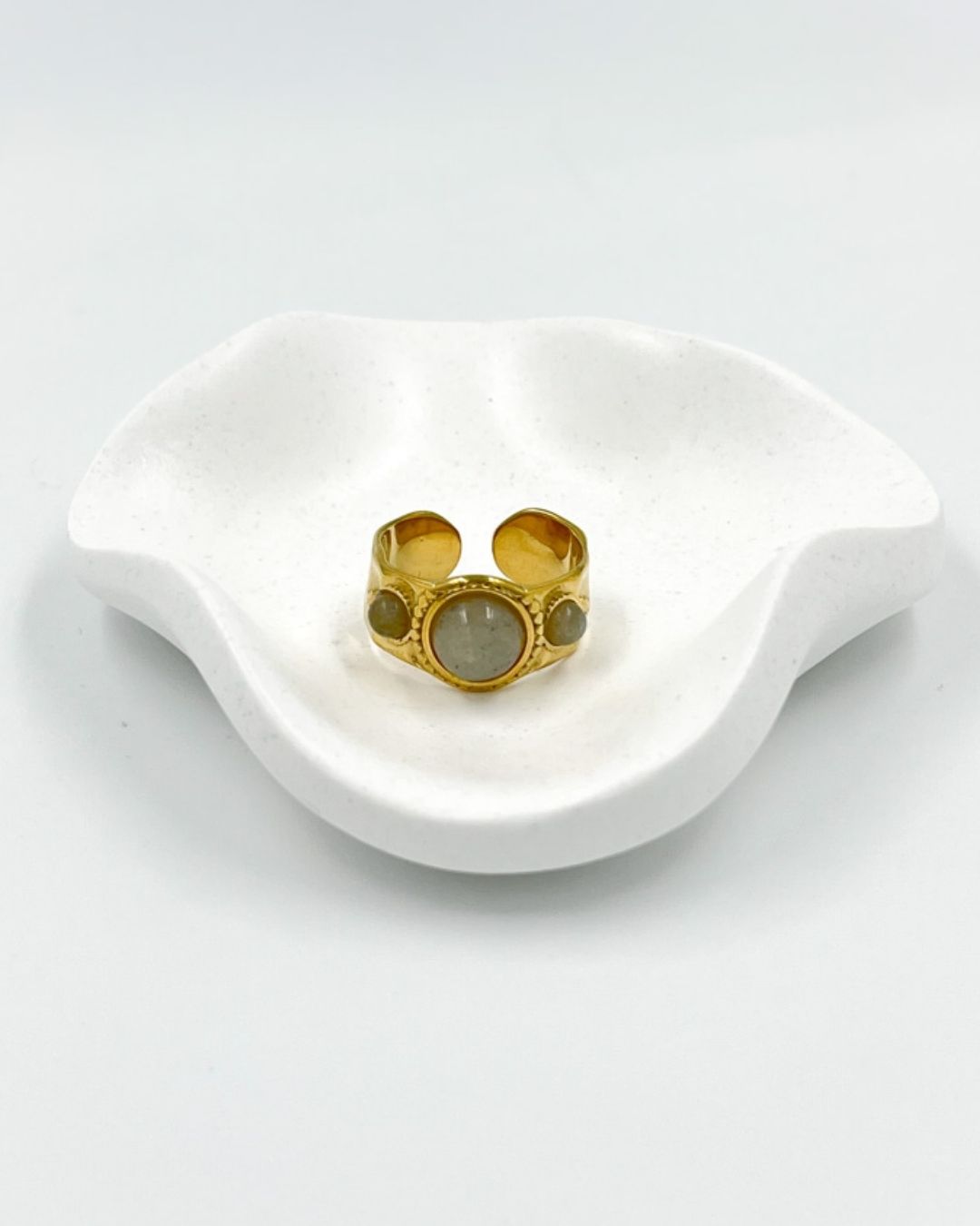 Minimalist tasarımıyla göz kamaştıran Gri Taş Detaylı Çelik Yüzük, paslanmaz çelik yapısıyla uzun ömürlü kullanım sunar. Altın kaplama dokusu ve ortasındaki zarif gri taş, günlük kombinlerden özel davetlere kadar her ortamda tarzınıza sofistike bir dokunuş katar.