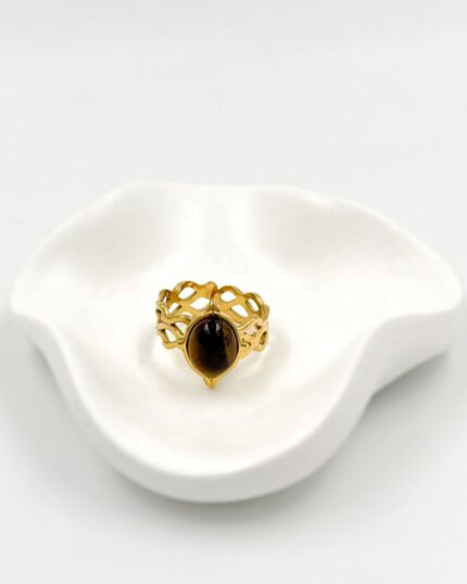 Gösterişli ve zarif tasarımıyla Lacivert Taş Detaylı Vintage Çelik Yüzük, klasik şıklığı modern dokunuşlarla sunar. Parlak altın kaplama yüzük üzerine yerleştirilmiş oval lacivert taş, vintage desenlerle çerçevelenerek dikkat çekici bir görünüm kazanır. Paslanmaz çelik yapısı kararma yapmaz ve uzun ömürlü kullanım sağlar.